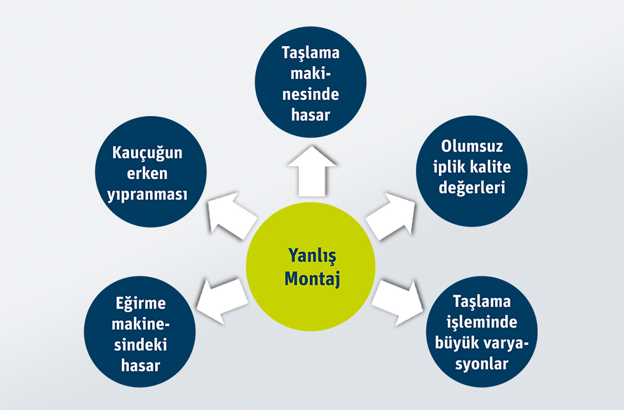 Yanlış monte edilen manşonlar akar veya eğirme ve taşlama işlemindeki diğer şeyleri etkiler.